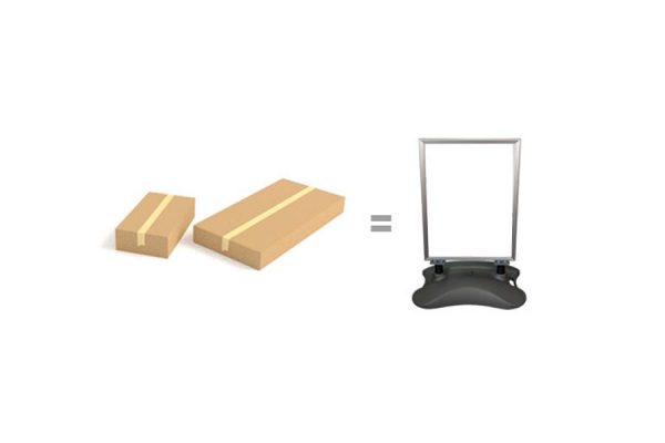 Reklamno stojalo je kvalitetne, moderne izdelave, v celoti iz aluminija, z dodanim spodnjim delom za vodno obtežitev. Enostavno se zloži in je hitro pripravljeno na prenašanje med različnimi lokacijami. S ”klip-klap” zapirali na vseh štirih stranicah se grafika hitro menja. Transport je v dveh škatlah iz kartona.