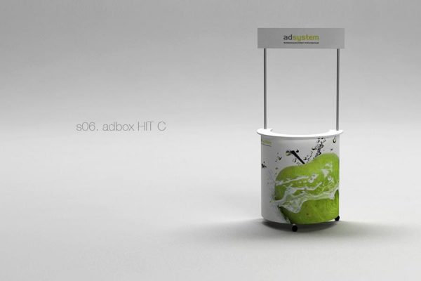 Promocijska miza HIT C  je trendovski, kompakten in vzdržljiv reklamni pripomoček za najrazličnejše promocije. Stabilna in zložljiva konstrukcija je uporabna za prenašanje, enostavno postavljiva z nosilnostjo do 100 kg. Nameščena kolesa omogočajo priročno premikanje, tisk je vključen. Moderna in vpadljiva C oblika je garancija, da boste na promociji resnično izstopali.