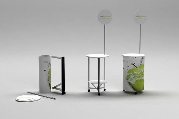 Posebej priročna za mesta, kjer so prostorske omejitve. Kompletna konstrukcija se zloži v prenosno torbo. Zaradi kompaktnih dimenzij in majhne teže je prepognjena stojala enostavna za prevoz do drugega mesta promocije. Visokokakovostni materiali in tehnične rešitve, ki se uporabljajo pri proizvodnji, zagotavljajo strukturno obstojnost in možnost večkratne uporabe. Grafika se zlahka menja.
